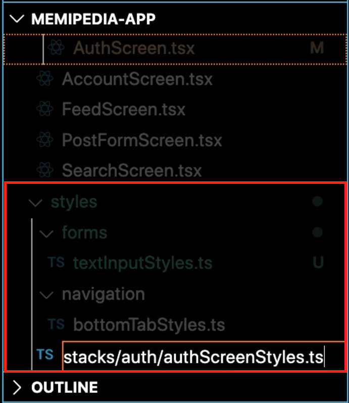 You could also, another thing that I've done for other applications, I might say something like stacks because then I could say stacks and then I could say auth because this is gonna be specific to our auth stack and then I could say something like authScreenStyles. It's completely up to you on how you personally wanna organize these. I'll do it this way just because if I were building out a larger application, this is probably the structure that I'd follow.